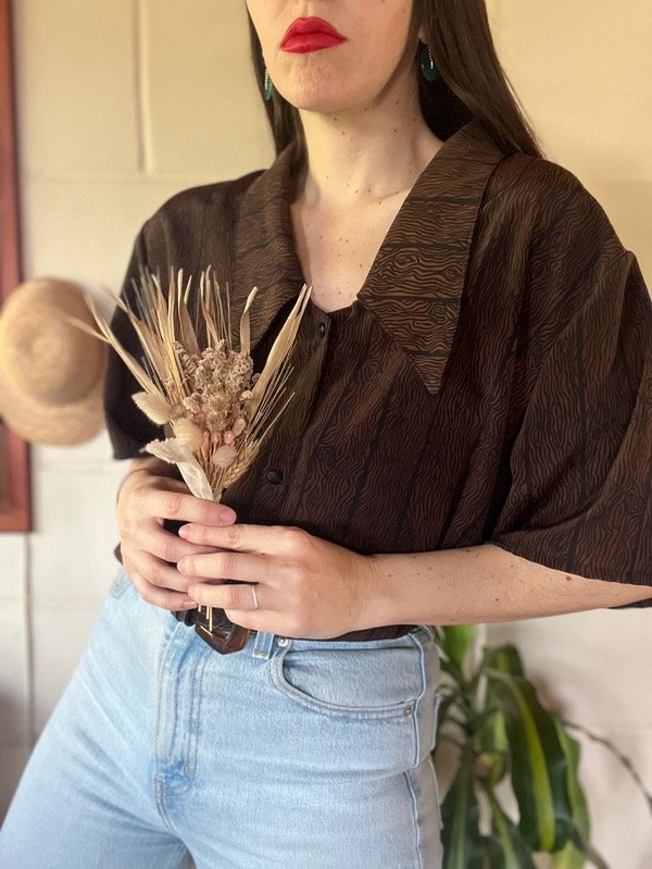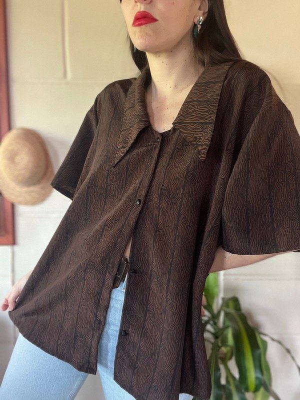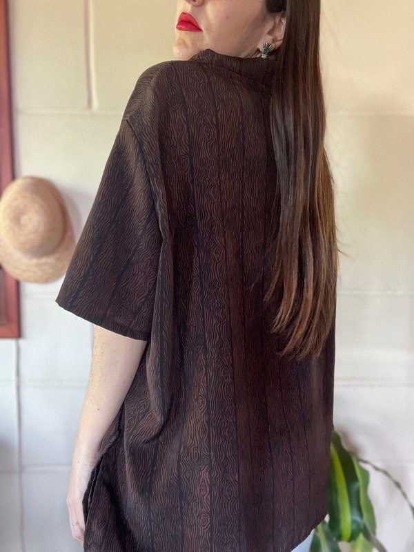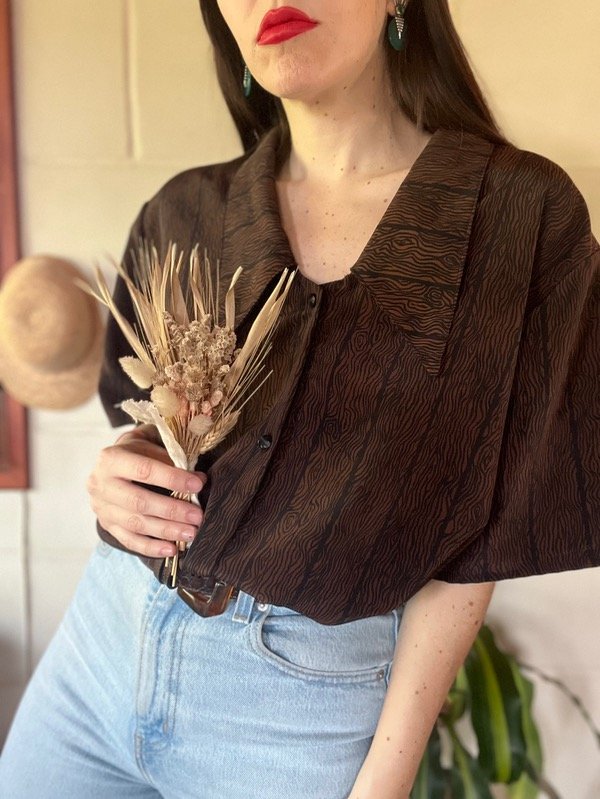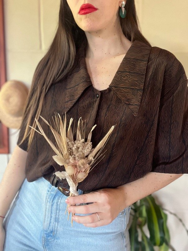 Camisa Psicodélic. Es muy bella con estampa y botoncitos vintages. Tiene un cuello hermoso. Tela suave y liviana tipo seda. Talle M amplio. Medidas: h a h 58 cm/ Sisa 55 cm/ Largo 67 cm. Excelente estado.