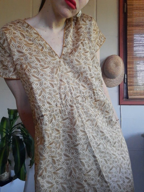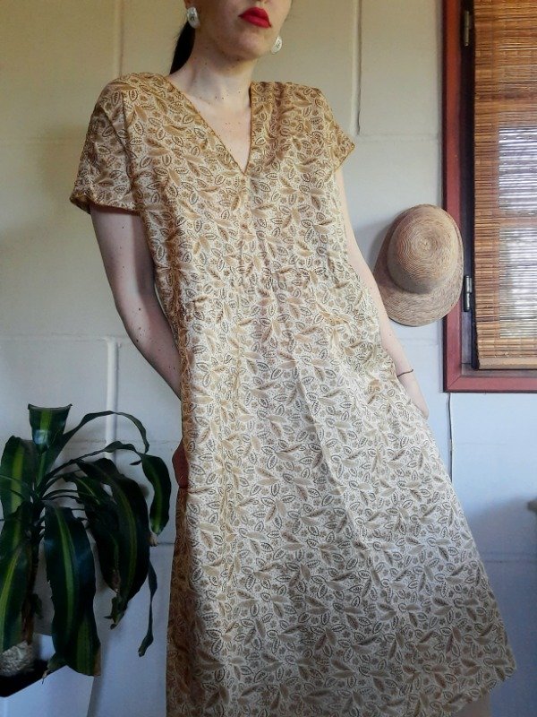 Camisola Larga maíz. Tipo vestido.Tela bien Liviana, suave y sin arrugas. Se puede usar suelto Oversize o cortar con cinto en cintura. Escote en V con hilo de Brillos. Talle L. Medidas: h a h 66 cm/ Sisa 58 cm/ Cintura 110 cm/ Cadera 130 cm/ Largo 107 cm. Muy buen estado.