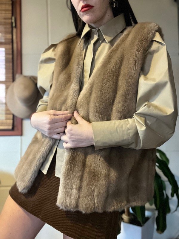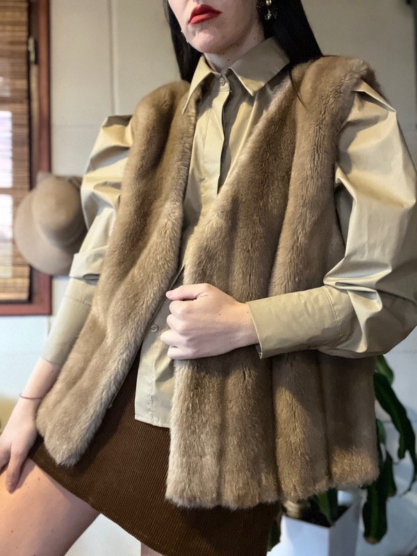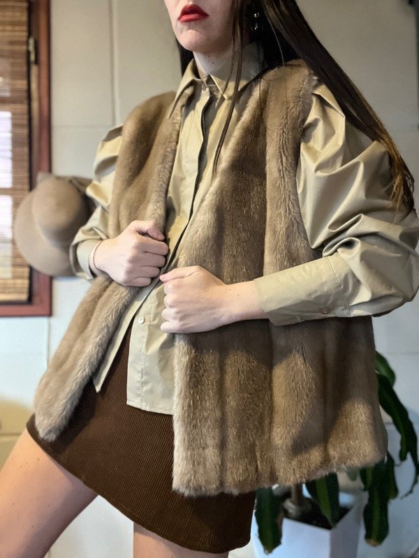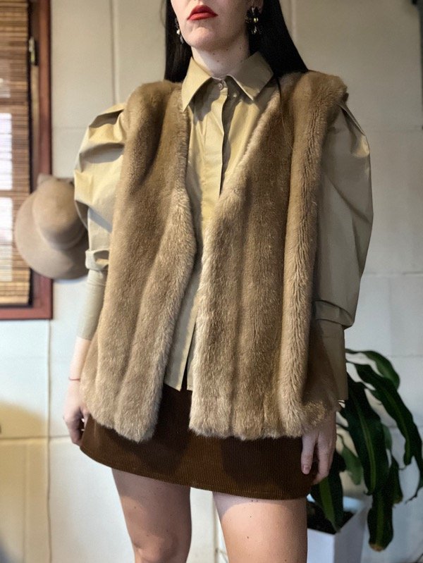 Chaleco de Piel Vintage. Es hermoso y re calentito. Color camel, un infaltable para esta temporada. Talle M Oversize. Medidas: h a h 60 cm/ Sisa 58 cm/ Largo 62 cm. Excelente estado.