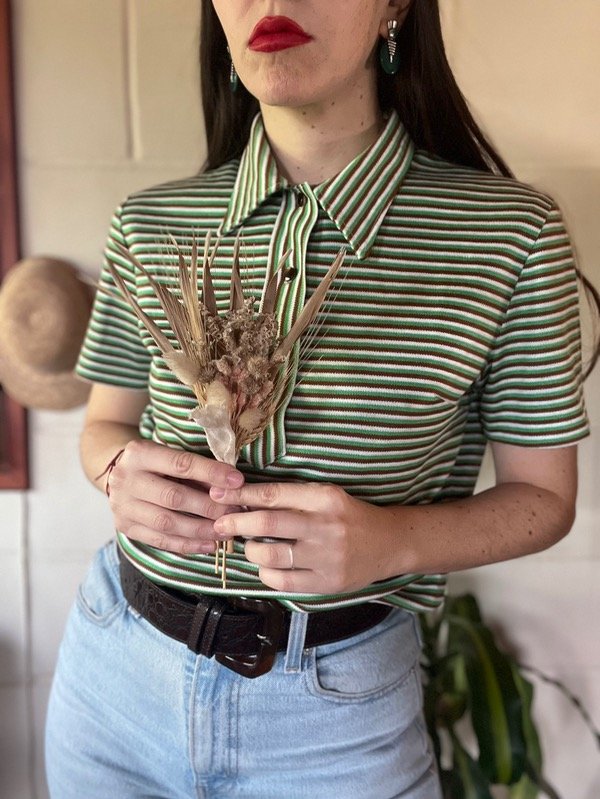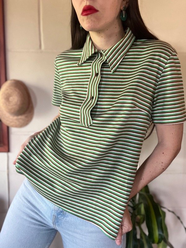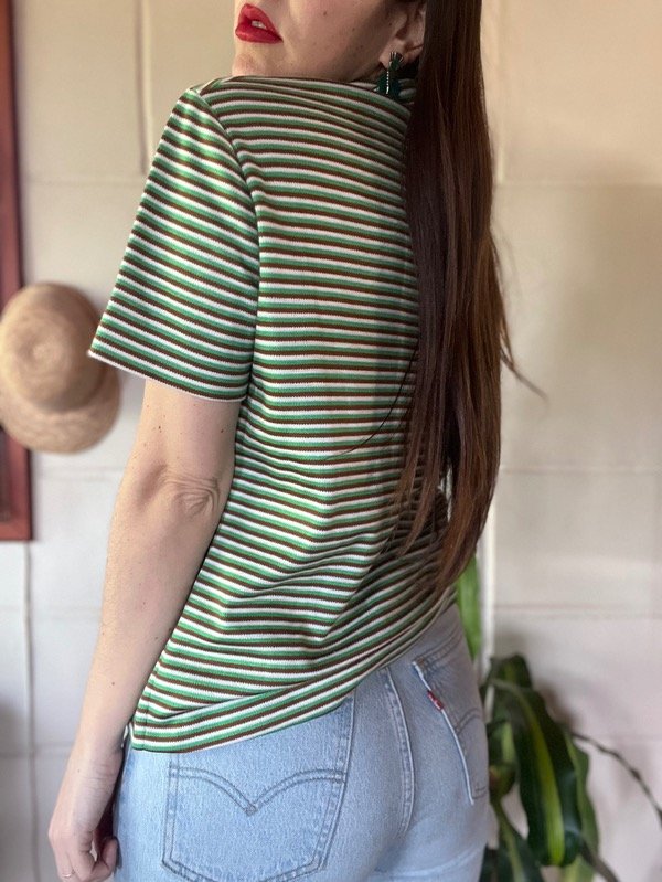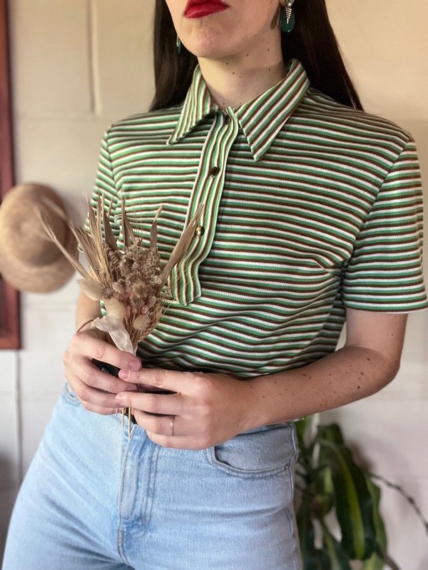 Chomba rayadita. Con botoncitos vintages y cuello hermoso. Talle M. Medidas: h a h 52 cm/ Sisa 50 cm/ Largo 60 cm. Muy buen estado.