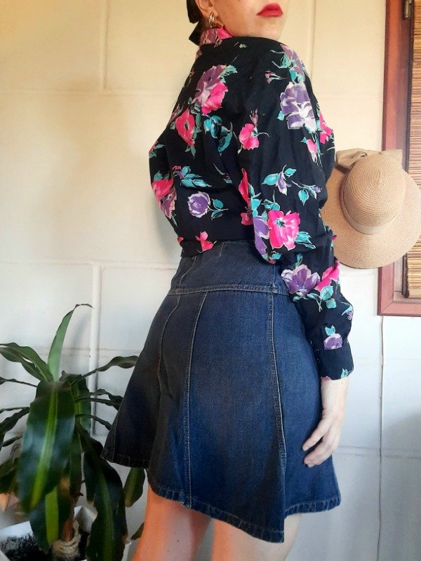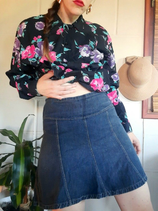 Falda de Jean. Es un clásico infaltable. Muy bella. De jean liviano no es Rígida.Con cierre trasero y pequeñas tablitas. Talle 38. Medidas: Cintura hasta 76 cm/ Cadera hasta 102 cm/ Largo total 42 cm. Excelente estado.