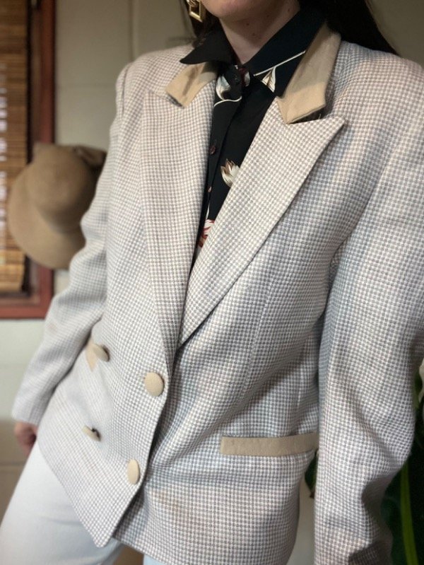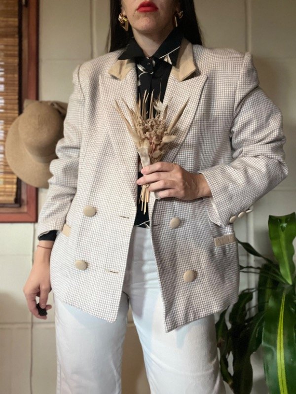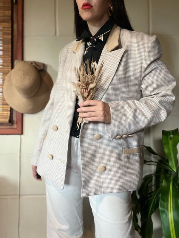 Saquito Maíz. Es una belleza, tela liviana y suave todo forradito en su interior, con detalles más claritos en bolsillos, cuello, mangas y botones. Talle M. Medidas: h a h 54 cm/ Sisa 53 cm/ Largo 69 cm. Muy buen estado.
